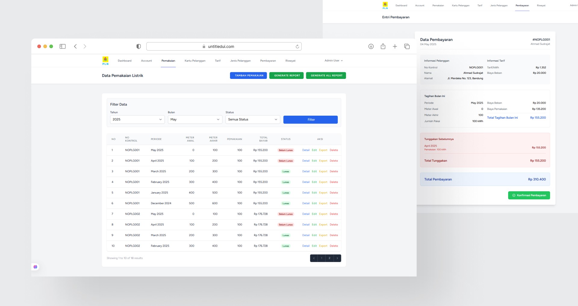I developed a web-based electricity billing simulation system for the 2025 Vocational Competency Exam (UKK). The system includes role-based access: users can check bills, officers can manage customers and payments, and admins have full control over all data. Built with Laravel 11, Tailwind CSS, and MySQL, this project gave me hands-on experience in CRUD operations, authentication, and real-world system workflows.